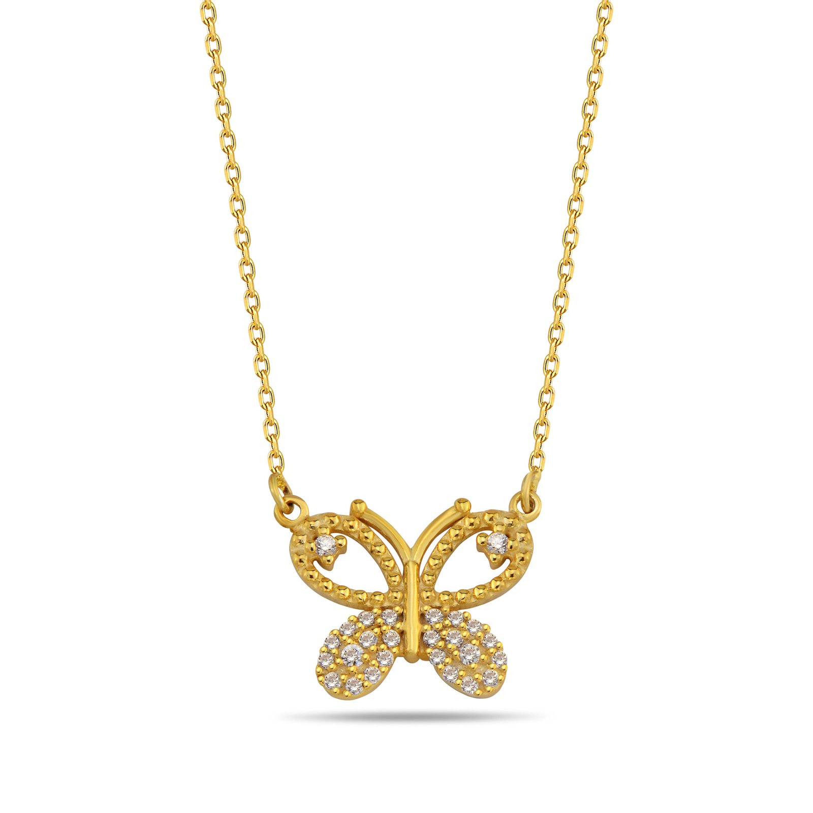 Hafiflik hissi veren akıcı hatlar, doğallık ve özgürlüğü simgelerken; kristal taşlarla işlenen kanat detayları ışığı zarifçe yansıtarak tasarıma sofistike ve dengeli bir ışıltı kazandırır. Formun merkezindeki ince yapı ise parçaya narin ama güçlü bir karakter kazandırır.